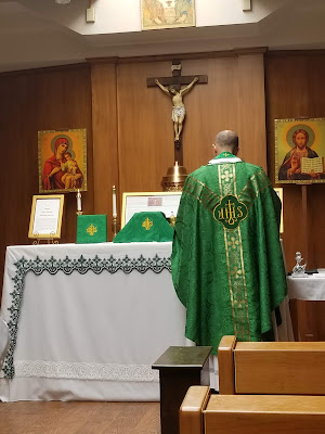 The Friday when I attended Mass, Mass was moved at the last minute from the main church to the monastery's chapel. While it took me at least 15 minutes to find it, it was actually on the other side of the large parking lot and in a building that looked like a house. The Mass itself was beautiful - one of the most beautiful and spiritually enriching Masses I attended, as evident of the holiness, care, and reverence of the priest.